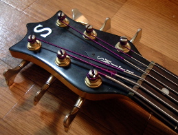 Ken-SmithのBT-6。91年ごろに購入。 当時5弦がちゃんと鳴る楽器を探しまくっ ていて、その時はこれかフォデラしかなく (JBタイプは全滅)、悩んだ末に音色の個性 でスミスにした。その後フレットレスに改 造。ミュ−トがかなり難しいが、サスティ ンの長さや中高域での音色がメロディ向き で大変気に入っている。弦間は少し狭め。 ネックは大変丈夫で購入後一度も調整はし ていない。ストラップを止める位置がヘン (どうも現行モデルはホ−ンが12F辺りに変 わっているらしい)なので立って弾くと1F がかなり遠くなるのが難点。音色最高。 2004.LoveBeerTorio 2005.黄金トリオ-1 2005.黄金トリオ-2 2005.菊池ひみこセッション 2006.黄金トリオ-1 2006.黄金トリオ-2 2006.静 2007.吉田英樹ソウルセッション 2007.佐藤誠グループ-1 2007.佐藤誠グループ-2(with KORG Effect) 2007.鹿島セッション 2007.安斎トリオ 2008.Handsome Trap 2008.後藤貴徳セッション-1 2008.後藤貴徳セッション-2 2008.Sweet Faces-1 2008.Sweet Faces-2 2008.Handsome Trap 2008.田村さおりカルテット 2008.田村さおりカルテット 2009.俺と安斎の夏のゆるゆるセッション-1 2009.俺と安斎の夏のゆるゆるセッション-2 2009.鹿島達彦セッション-1 2009.鹿島達彦セッション-2 |