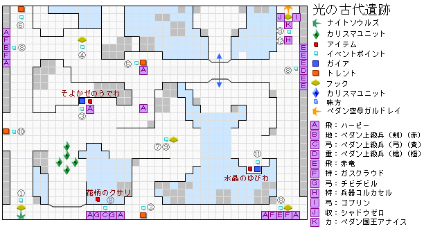 ただしここにはハーピーがばらばらに3体いますので、カリスマユニットで倒しておきましょう。 |