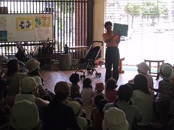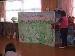ペラペラめくっていく紙芝居にみんな大喜び。集中して見ていました。