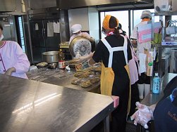H厨房は大忙し!せっせと焼きそばにポークフランクに・・・