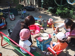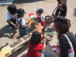 @保育園の子どもたちと一緒に園庭でお砂遊び