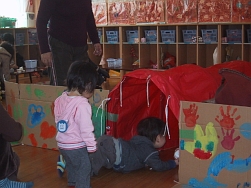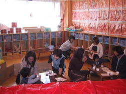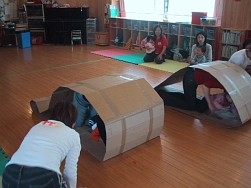 8組のみなさんが参加してくれました。段ボール箱やトンネルの迷路を潜り抜け、色々な手作りコーナーやゲームで楽しく過ごしました。