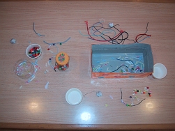 G水槽の中には、金魚にクワガタ、カブト虫そしてプーさん!?全部人形ですよ。