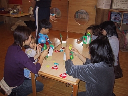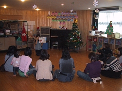 12組のみなさんが参加してくれました。親子で手作りのクリスマスツリーを作ったり、紙芝居や歌をうたったりして楽しい時間を過ごしました。