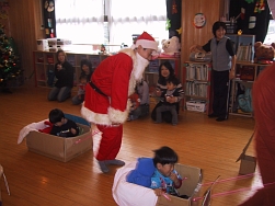 サンタさんの登場にびっくりしていた子どもたちも、一緒に遊んでいるうちに笑顔になっていました。