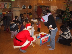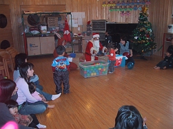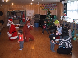 楽しい雰囲気の中で遊んでいた子どもたちの前にトナカイさんとサンタさんが登場!!喜んでいる子どもや、ちょっぴり怖くて泣いちゃう子どももいました。